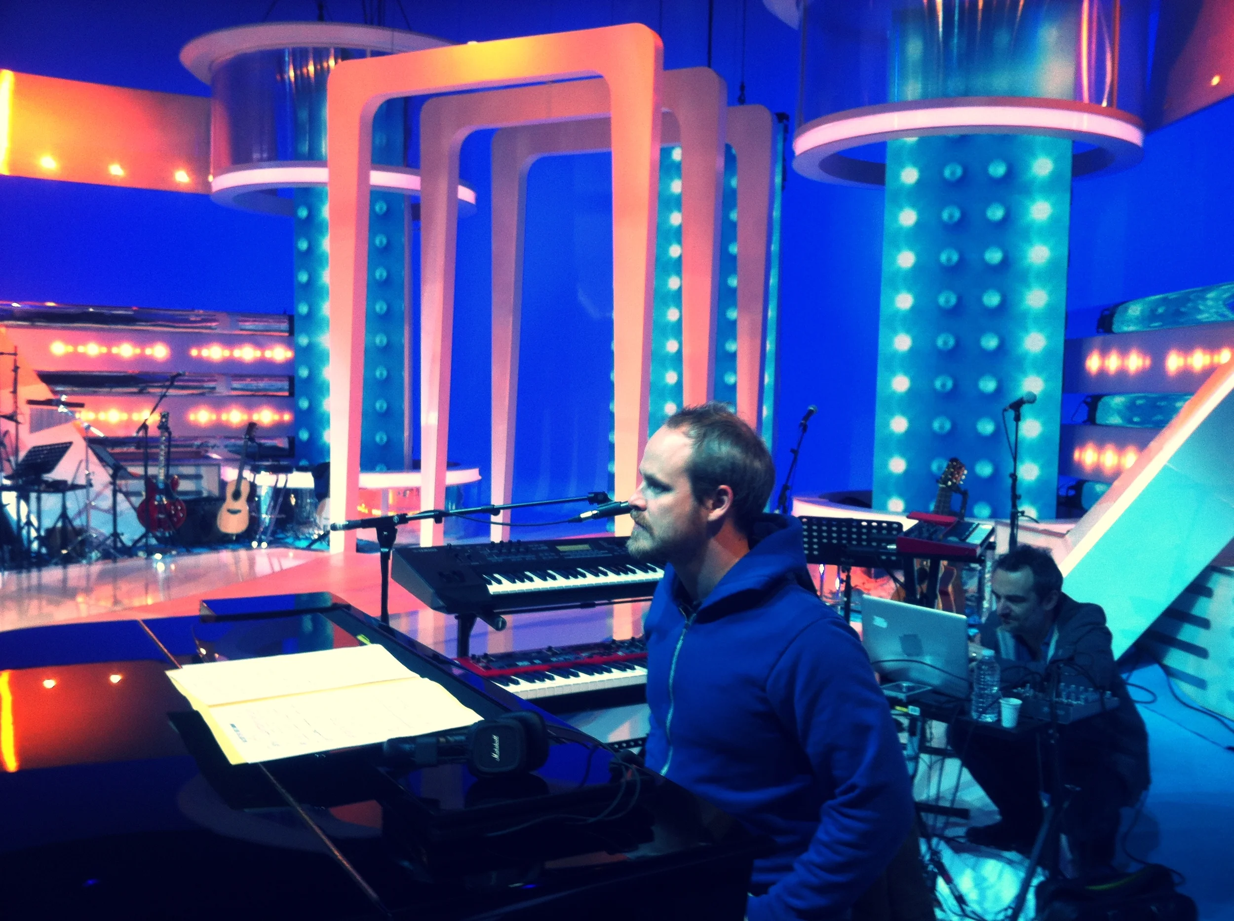 Tournage aujourd'hui de l'émission "Les chansons d'abord" sur France 3, présentée par Natasha St.-Pier.