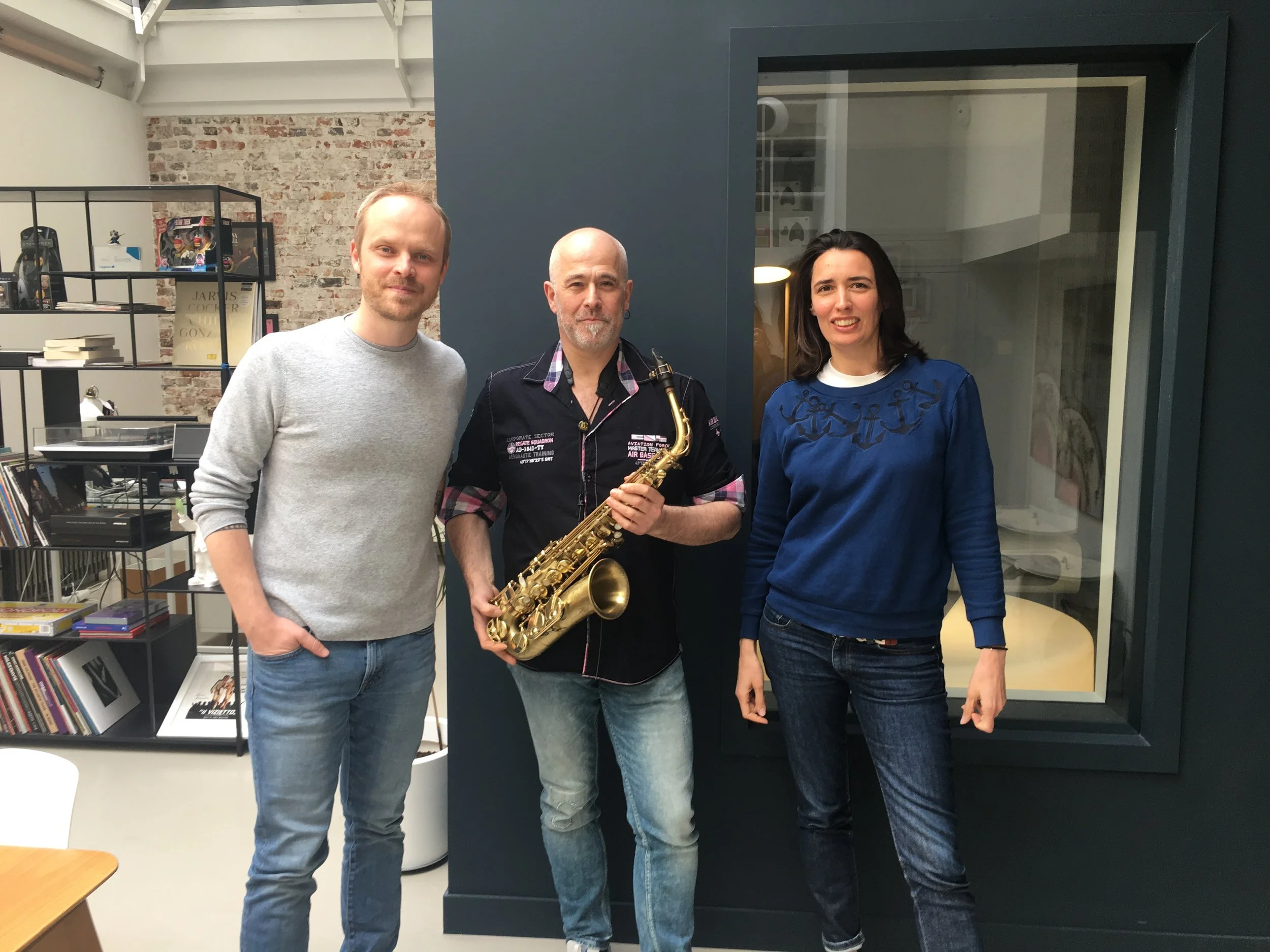 En séance chez Start Rec avec le saxophoniste François Chambert et Domitille Mahieux (DG)